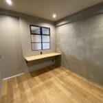 ・クロス貼り替え、一部タイル左官、リビング壁・天井モルタル左官仕上げ